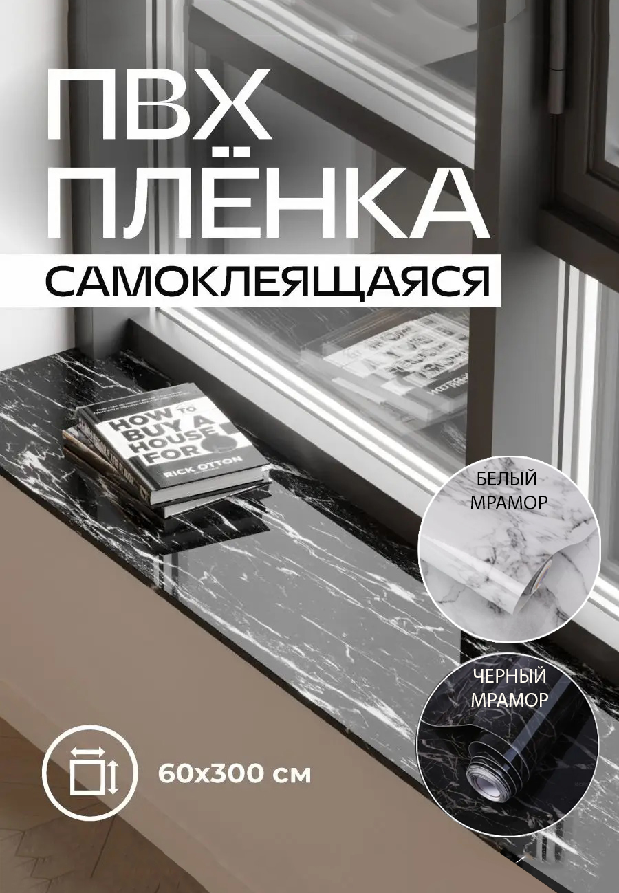 Самоклеящаяся мраморная пленка 60 х 300 см в черном или в белом цвете предназначена для декорирования кухни, ванной комнаты и любых других гладких поверхностей – столов, шкафов, стен, полок. Пленки легко устанавливаются, не боятся воды, и являются не только защитой, но и украшением для помещений.